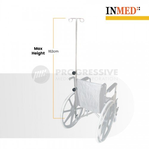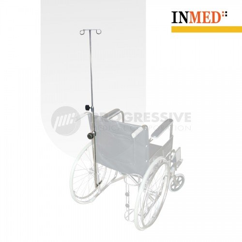 Attaches to most wheelchairs, easily hangs IV fluid and medication.