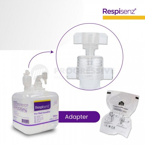 Respisenz Prefilled Humidifier, 350ml combines an easy-to-use adaptor that connects to the oxygen regulator and pierces the bottle hygienically, preventing contamination of the sterile content.