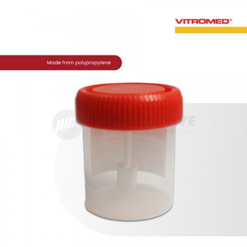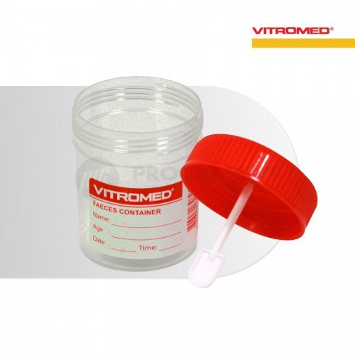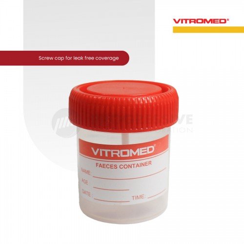 Vitromed Specimen Container is a leak-resistant container for collection and transport of laboratory specimen in urinalysis and fecalysis.