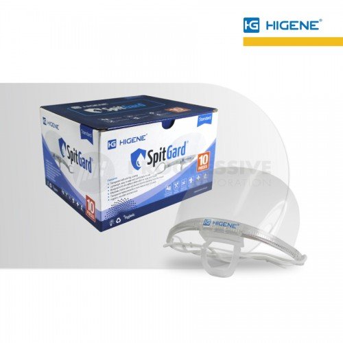 Higene Spitgard is a mouth shield designed for protection from the spread of harmful bacteria that often occurs via subtle splashes of saliva from the mouth.
