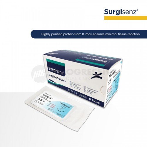 Surgisenz Nexisilk is a non-absorbable, sterile surgical suture made from fibroin, an organic protein derived from the domesticated species Bombyx mori (B. mori - the silkworm used to produce silk). The sutures are processed to remove natural waxes and gums, then dyed black and coated with a special wax mixture. This suture is indicated for general soft tissue approximation and ligation, including use in cardiovascular, ophthalmic, and neurological procedures.