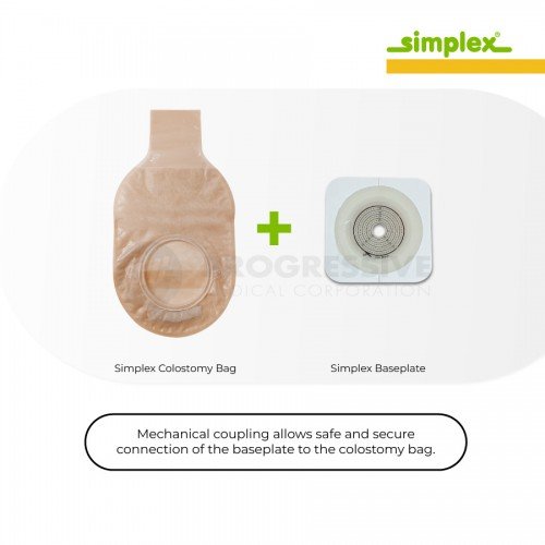 - Mechanical coupling allows safe and secure connection of the baseplate to the colostomy bag.