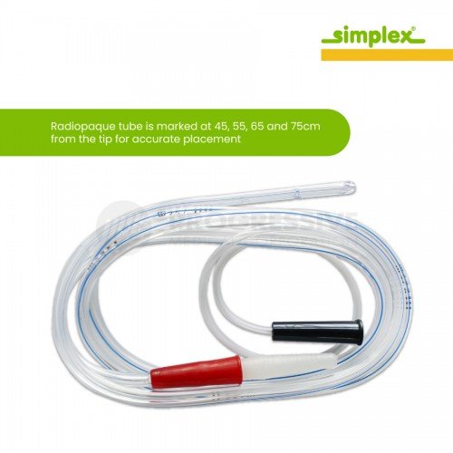 - Radiopaque tube is marked at 45, 55, 65 and 75cm from the tip for accurate placement. Proximal end is provided with universal funnel connector along with double tapered connector for easy extension.