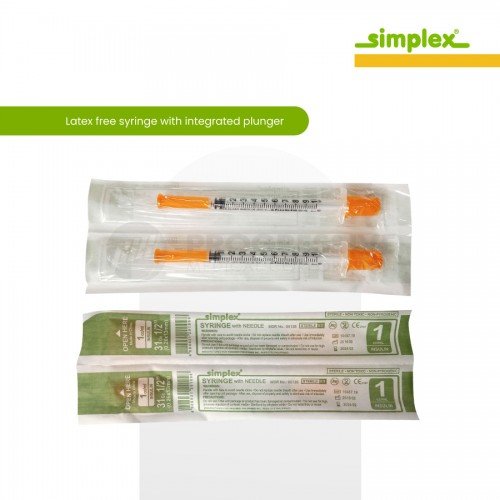 Simplex Disposable Syringe with Needle, Sold by box of 100's