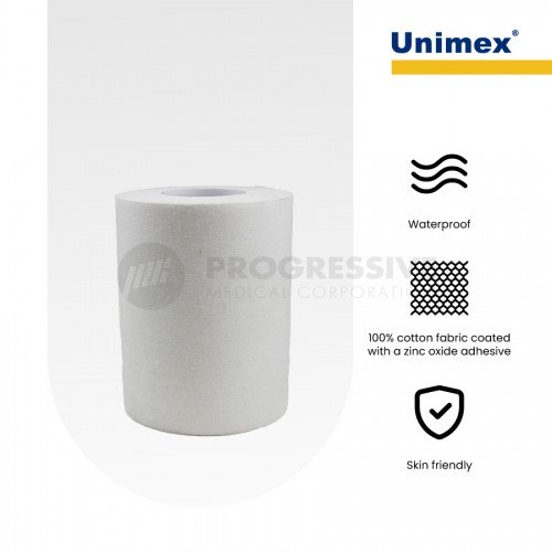Unimex Adhesive Plaster with Zinc Oxide are high quality adhesive plaster that conforms to all areas of the body for strapping and holding dressing in place, provides firm support and compression while soothing the skin.
