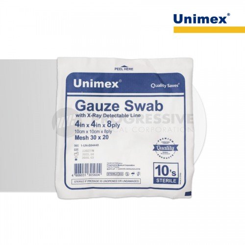 Unimex Gauze Swab, 4x8 with Xray (sold per pack of 10s)